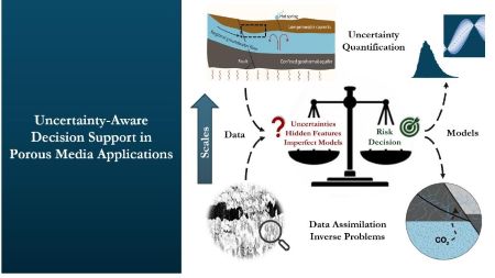 This minisymposium will explore uncertainty in its many forms: from epistemic challenges due to incomplete knowledge of material properties, pore structures, and limited observability of geological formations; to the aleatory variability inherent in natural systems and the risks introduced by simplified or imperfect models. We welcome contributions that address risk assessment, process optimisation, screening and decision-support tools designed to operate under imperfect information, as well as work that critically examines how modelling uncertainties shape predictions. The scope also encompasses complementary approaches that enhance robustness and decision relevance, including inverse modelling for parameter estimation, data assimilation to integrate models with experimental data, and model reduction to enable efficient uncertainty-aware analysis at larger scales.