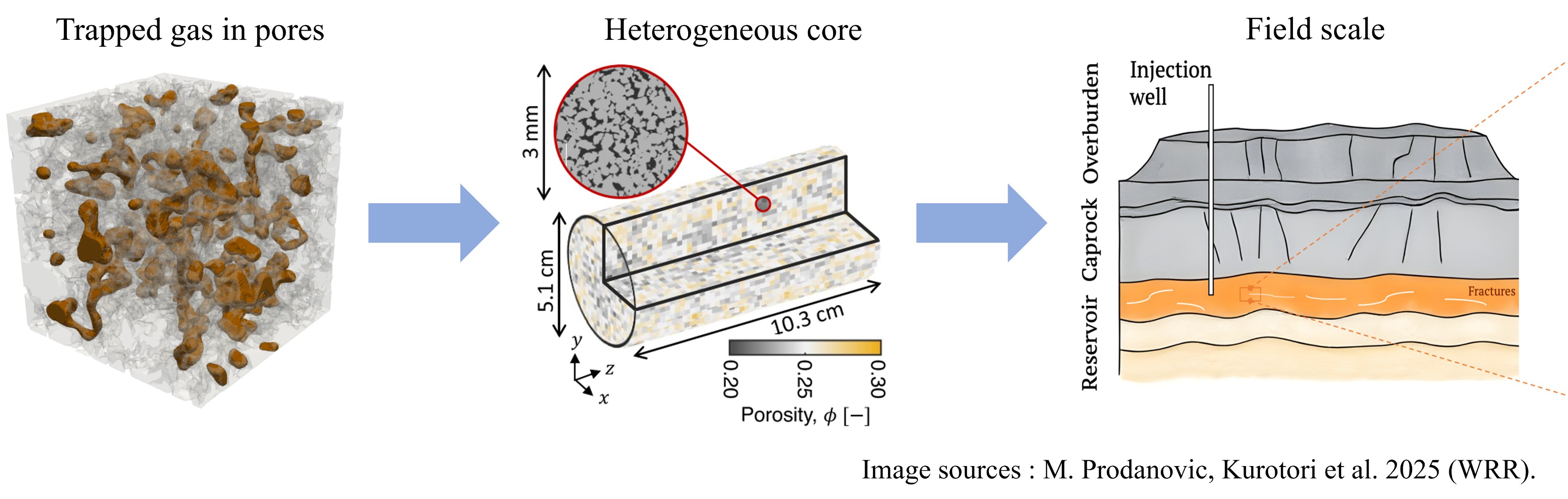 - Analysis of sub-pore and pore-scale heterogeneity and complex micro-structures that shape macro-scale, multiphase flows.